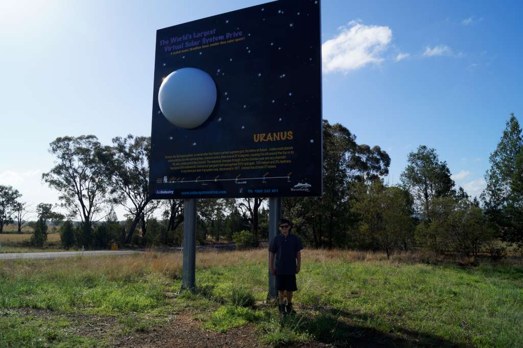 These are pictures of when we visited the world’s largest virtual solar system. It starts at the sun represented by Australia’s largest observatory: Siding Springs. http://solarsystemdrive.com/ The coolest thing about it is that the distances between the planets are to scale in real life. If you’re near the observatory you should definitely go out and see the planets. It is a nice drive and you might see kangaroos, emus, and an echidna like we did. It took us a few months to see everything because they are far apart from each other.